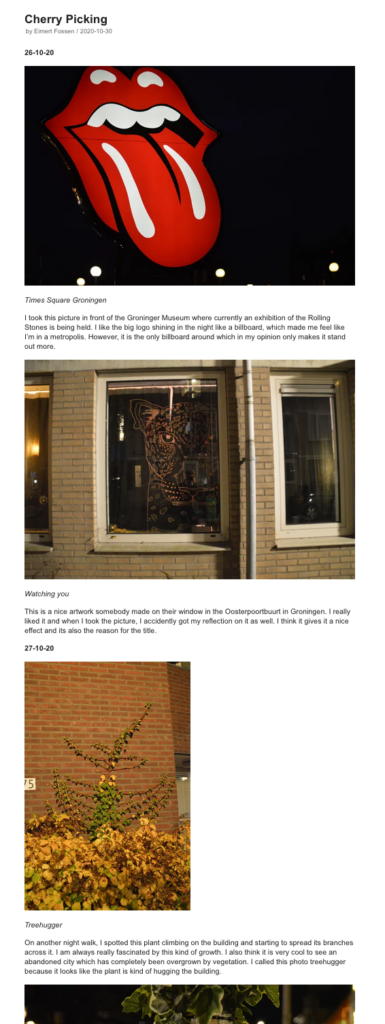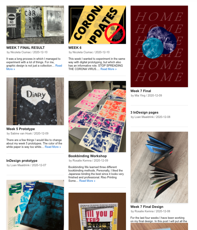The homepage of the blog will look something like this (left) and a post might look something like this (right) – this is the most simple design of a post, if you want you can experiment with the possibilities of lay-out . Do not make images to small, remember the whole point of this blog is to give insight in your process and work.
