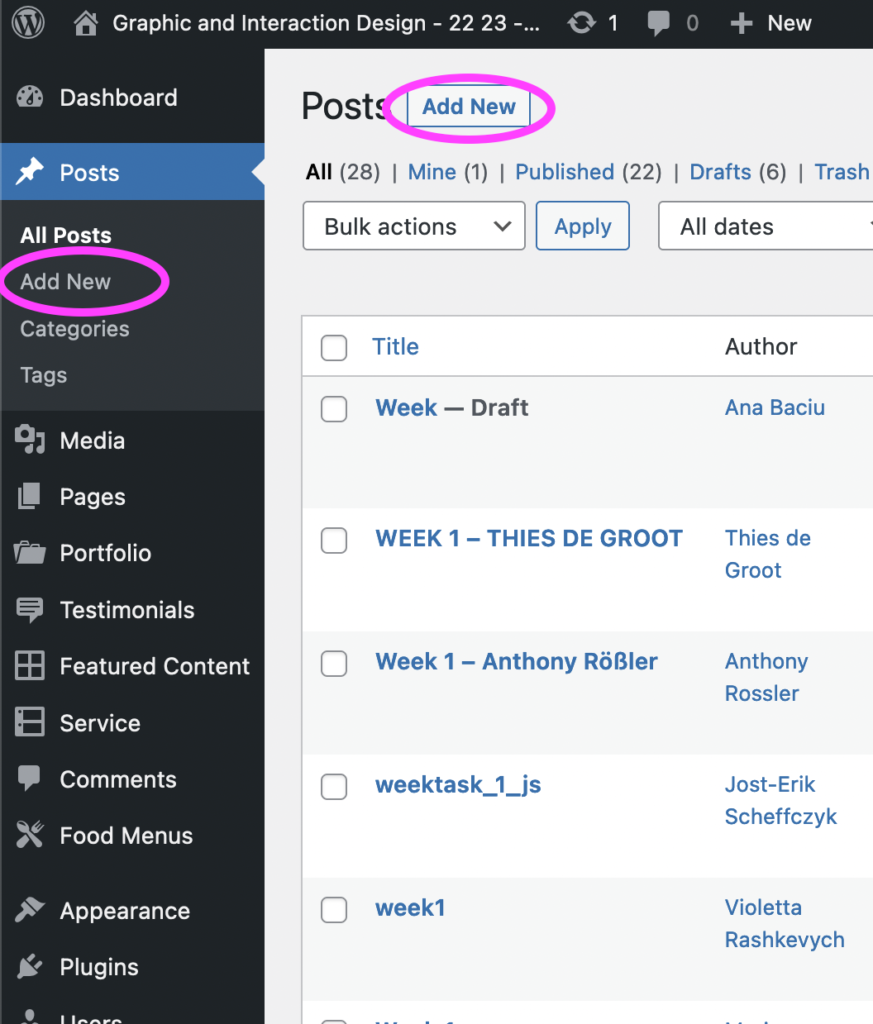 !! Don’t forget to use the ‘Publish’ / ‘Update’ button when posting.